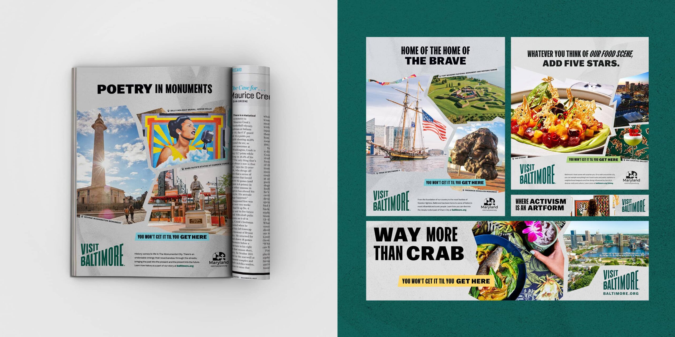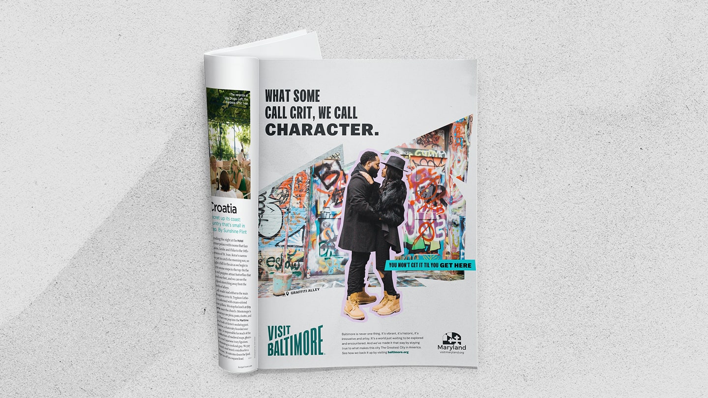 Rather than glossing over perceptions with a polished tourism veneer, we embraced a more authentic look at Baltimore. The campaign keyed off an important truth: Baltimore is hard to describe, and outsiders need to suspend misperceptions and experience it firsthand. This approach created intrigue and played on traveler FOMO. Showcased across print, outdoor, and digital media, the campaign proved that Baltimore is a living story waiting to be experienced.